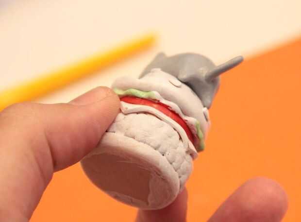 - Mezclar la pintura coloreada con agua hasta llegar a una tinta como estado e inició en la pintura. Plan de tus errores y los colores en un orden que harán fácil fijar la pintura. Aquí empecé con los tomates rojos porque sabía que no había manera sería capaz de hacerlo sin obtener pintura roja sobre la lechuga en el queso. Pintando los tomates primero soy libre para hacer esos errores con el rojo y luego cubrirlos para arriba más adelante cuando pinto el queso y la lechuga.