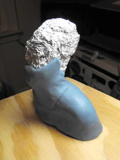 Una escultura es más grueso que un par de pulgadas puede ser problemático. No sólo es una pérdida de arcilla, pero pedazos más gruesos son ligeramente más propensos a agrietarse durante el horneado. Utilizando Cruncheando encima de papel de estaño como un relleno soluciona los problemas, sólo asegúrese de que la adición de al menos 3/8 alrededor de él para darse espacio para esculpir. He intentado usar menos pero cada vez que hago terminar golpeando la lámina y tienen que trabajar alrededor de él.