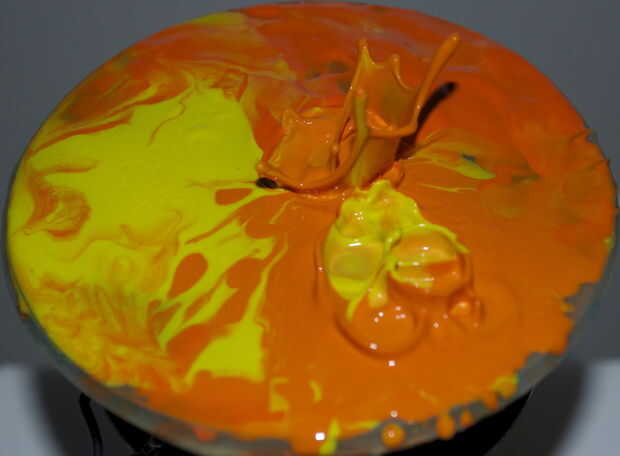 También, la mejor imagen es la que sucede sólo milisegundos después de que la música comienza. De lo contrario la pintura se mezcle (a menos que sólo utiliza un color de pintura). Por esta razón el sistema de flash que estaba hablando es útil, porque es capaz de captar ese momento. Si no tienes esto, entonces utiliza un sistema buddy! Así alguien puede estar en la cámara y presione el botón justo antes de la música (Recuerde el tiempo de retraso) luego alguien para iniciar la música.