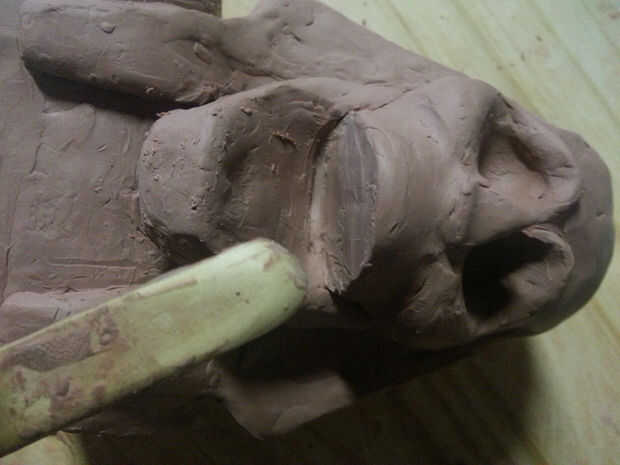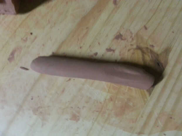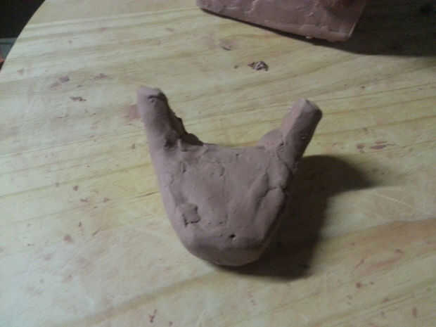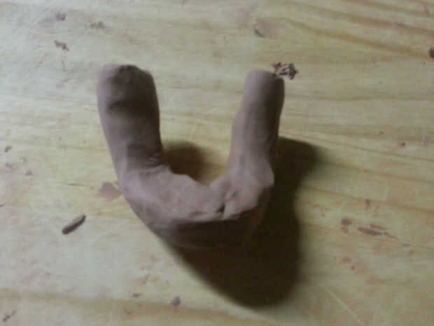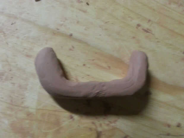 El gusano en el centro de la curva, luego rellene la zona con la arcilla. Recorte los lados internos de la mandíbula de manera que puede caber en la escultura.