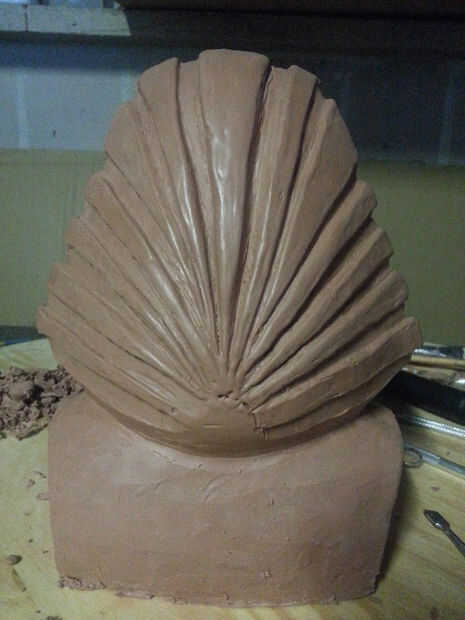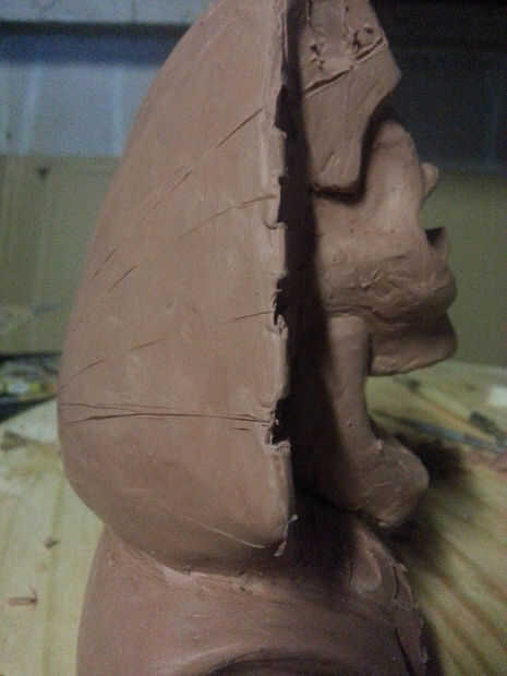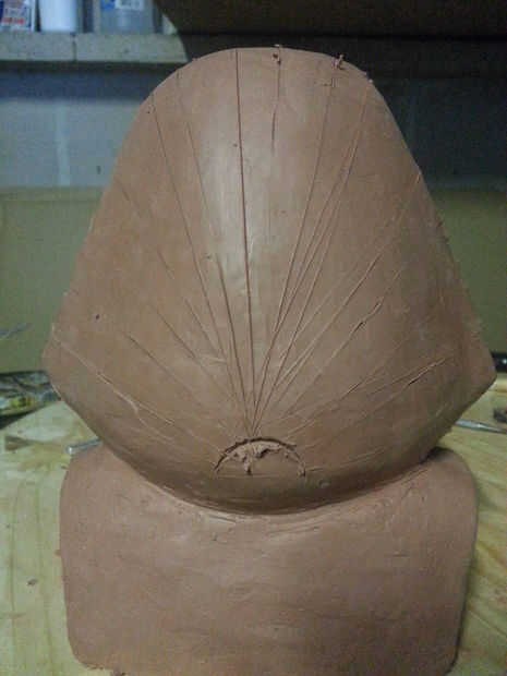 Utilizando una herramienta de espátula de metal o un pequeño bucle, crear líneas en los tocados. Labró nueve líneas a cada lado de los tocados pero tu obra puede ser más grande o más pequeña que la mía. También he añadido dos líneas en la parte superior del tocado.