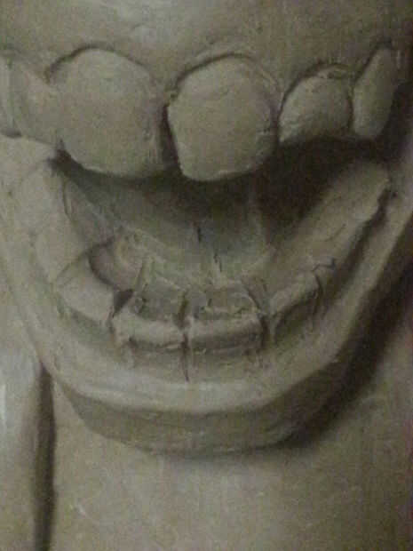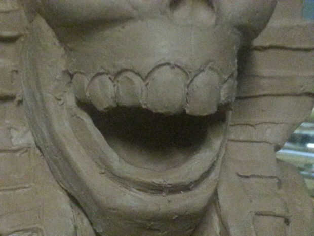 Utilizando una herramienta de goma, dibujar a lo largo de los bordes de los dientes. Añadir los granos de arcilla en la parte inferior de los dientes para darles diferentes formas.