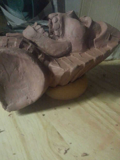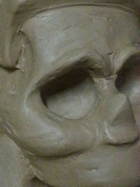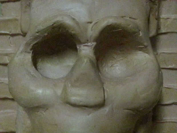 Utilizando una herramienta de la aguja y la herramienta de goma, añadir detalles a la cara como grietas.