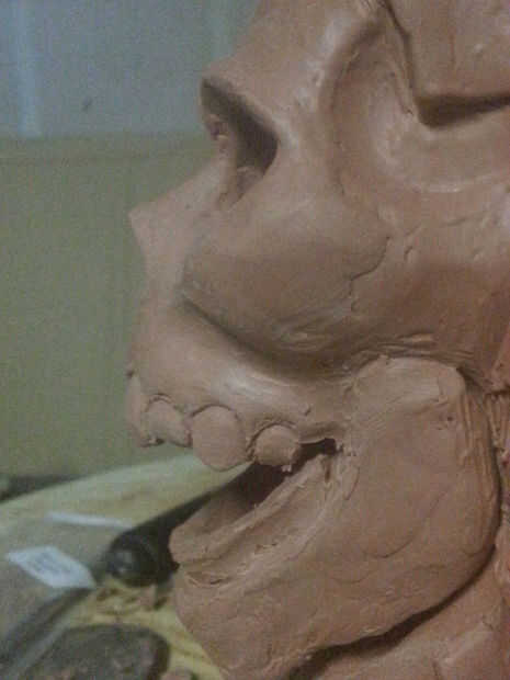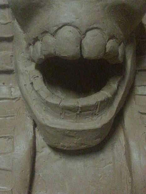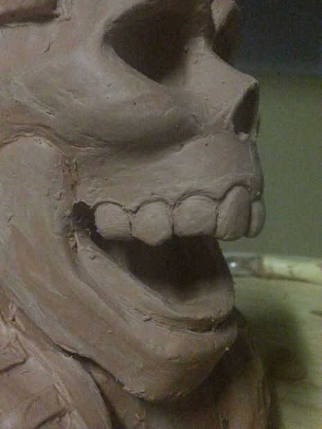 Rodar dos gusanos largos de barro y recortarlo para caber dentro de la boca. Estos serán los dientes. Después de que Lisa los gusanos, empezar a dibujar la forma de los dientes. Apreté los lados de las herramientas de lazo en la arcilla para hacer la forma de los dientes.