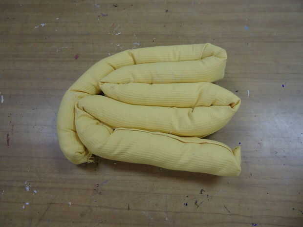 Corté un rectángulo largo de tela y luego doblé por la mitad. He cosido abajo de lado y luego la relleno en cada extremo. luego caliente pegué los lados juntos por lo que le parece que fue doblado para arriba.