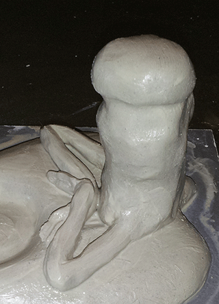 En este caso también he añadido un poco de un hueso de la espalda apretando la arcilla entre mis dedos.