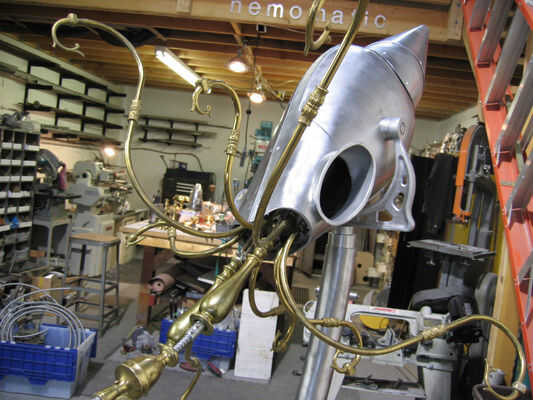 Todos los tentáculos del arrendador que se empernó alrededor de la boca de apertura, dejando espacio para los grandes colocar dentro. Tuve un pivote ajustable con conexión de resorte de la máquina para que la cabeza podría responder suavemente a todas las tensiones al azar que produciría el motor.