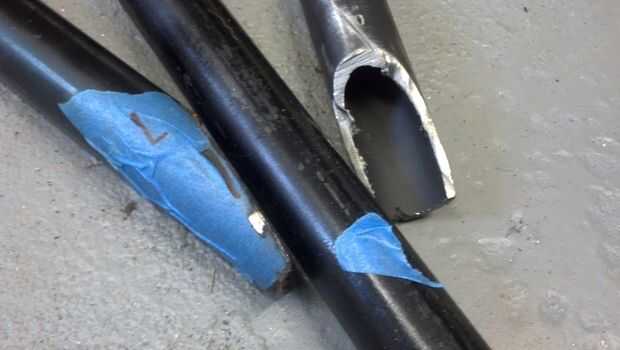 Para terminar el cuadro, agujeros perforados en los extremos del tubo frontal del rey pins y los ejes.
