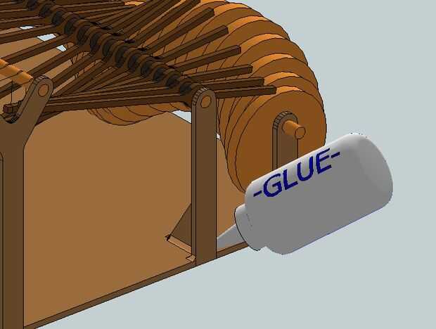 Ahora coloque el último pilón de P2G2 en el extremo del eje y presione en su lugar en la base. Hacer una verificación de giro libre para asegurarse de que todo está funcionando correctamente. Si todo está bien, pegue el axel de la torre y dos torres de alta tensión a la base.
