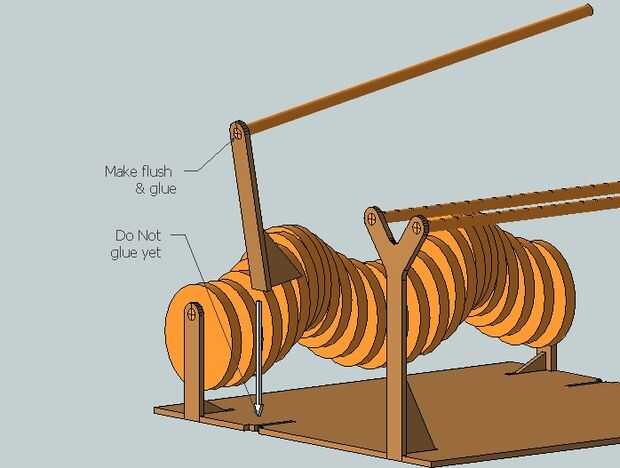 A partir de una de las palancas, alternas sobre las palancas y las secciones de paja. Puede que desee apoyar el final del eje así que usted puede colocar las cuerdas en sus guías para evitar que se enrede. Repita hasta que todas las palancas están en lugar separado de la paja para el espaciado adecuado.