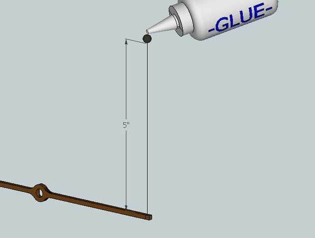 Ahora atar una cadena a la palanca en la hendidura pequeña. Un pequeño punto de pegamento para asegurar el nudo es una buena idea. En el otro extremo de la cuerda, deslice el talón. Para hacer el efecto de la onda de seno se ve bien todos los granos debe ser en las cuerdas de la misma longitud. Tan en lugar de meterse con nudos quisiera medir la longitud de cadena y luego pegar el talón en su lugar. 5 en de cadena entre la palanca y el grano debe trabajar. Repetir, repetir, repetir...