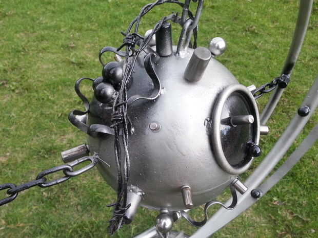 "Pesadilla del Secretario" es una escultura musical, una escultura que hace interesantes sonidos cuando se golpea. Evolucionó de una bola de acero hueco de espejo que he encontrado lavado para arriba en una playa y alguna máquina de escribir ant