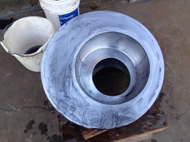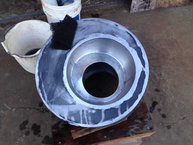 Todavía era una pequeña escala de molino en la parte de la escultura que despojado antes de aplicar la pátina. Una solución de ácido muriático trabaja bien por disolución de la escala gris oscurezca y exponer el metal desnudo por debajo. Ácido muriático es gnarly cosas tan guantes de goma, utilice en un área bien ventilada y tener agua limpia lista para enjuagar la pieza. Comencé agregando 1 parte de ácido muriático por 3 partes de agua (Añadir siempre el ácido al agua y no al revés) y liberalmente aplicado a la pieza. Usando un cojín de la mano de grueso scotch brite, limpia la superficie y la escala comenzó a disolver lentamente. Después de que la pieza fue despojada, yo completamente aclarado y había lo había secado. La gran atracción detrás de usar el ácido muriático es que el acero empieza a oxidarse inmediatamente. Si es posible, estar preparados para aplicar el acabado tan pronto como usted haya completado este paso.