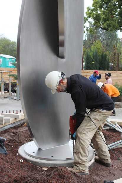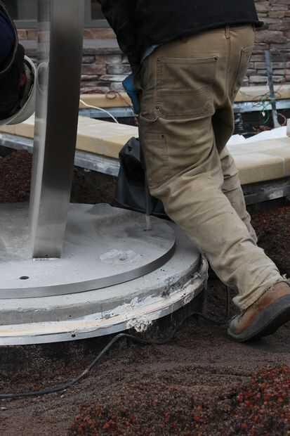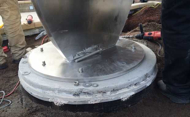 Hemos perforado a través de los orificios de la placa base para asegurarse de que los pernos se ser alineados. Especificaciones de la ingeniería requiere 8 agujeros, cada 7/8' ø x 7 1/2" de profundidad. Buenos tiempos. Introduzca tus tapones para los oídos y manos a la obra.