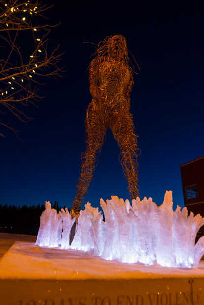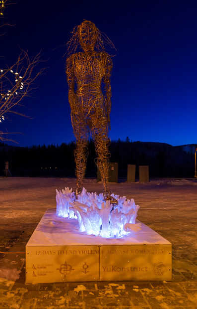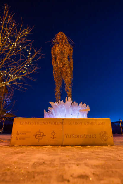 YuKonstruct con Arte astillada, Victoria Faulkner centro de mujeres, Les EssentiElles y Yukon de cinta blanca para realizar un proyecto para los 12 días de campaña de poner fin a la violencia contra las mujeres. Durante varios días hemos construido una gran escultura con la ayuda de muchos voluntarios.