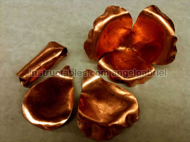Tres de los pétalos que utilicé... aparece aquí con el prototipo que nunca usé.