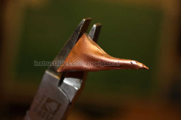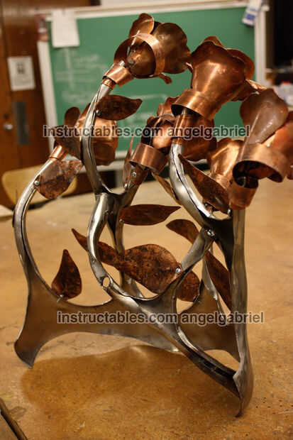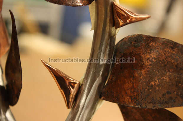 Esta es la espina del prototipo que se me ocurrió, intentando agregar dimensión y aspecto orgánico a chatarra de cobre.