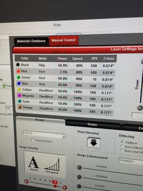 • La configuración de energía en el panel de corte laser en CorelDRAW debe coincidir con la foto de arriba.
