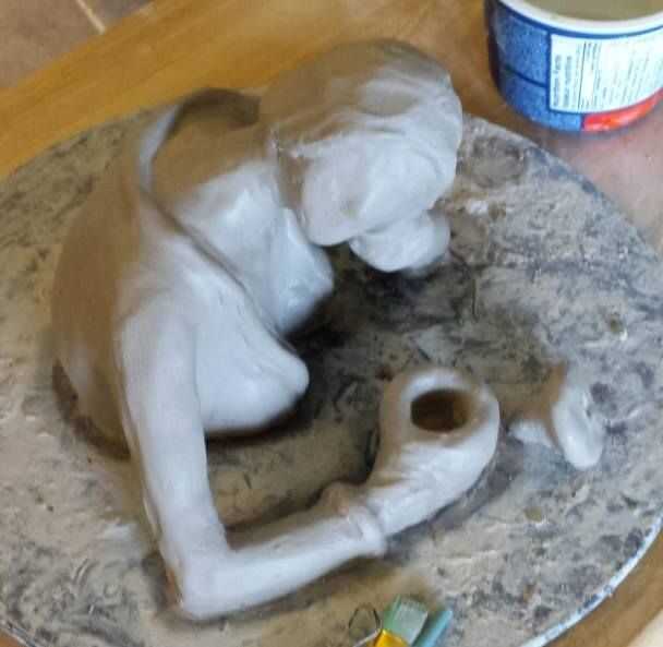 La técnica utilizada para hacer esta figura es a la formación de la arcilla de la tierra, con sólo un pequeño apoyo según sea necesario. Este enfoque funciona bien para una pieza como esta.