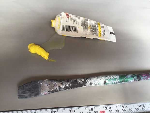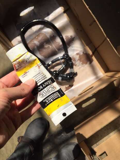 Vuelva a colocar el collar en la caja y mezclar un poco de agua con la pintura acrílica - luego gotear la pintura sobre el collar. Dejar que se seque completamente.