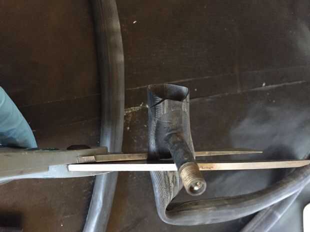 Limpie el neumático con un paño húmedo para quitar cualquier polvo o suciedad. Localizar y cortar la válvula del neumático en ambos lados de la misma.