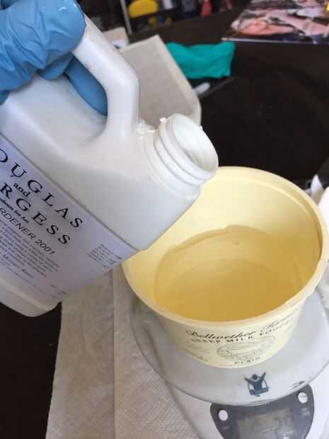 En los siguientes imágenes me pesó el epoxi a 160 gramos y luego añaden 80 gramos de más. Mezclar bien.