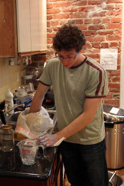 Una vez que estaba seguro que había fijado el alginato, cosquillear mis dedos sueltos y suavemente se retiró mi mano del bloque de alginato, dejando un molde negativo de mi mano.