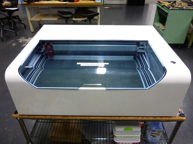 • 写真上: レーザーカッター (Oh-Laser 小型CO2レーザー加工機 HAJIME)