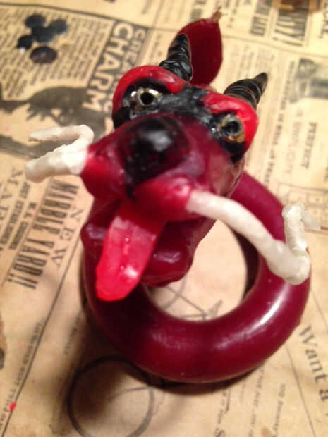 A continuación, hacer un agujero en la cara de los bigotes por la calefacción para arriba de su hocico en el agua y muy suavemente empujar un palillo de dientes todo el camino a través de él. Use su encendedor para derretir tanto la punta de la mecha y el agujero antes de poner la mecha en todo lo que puede pasar.