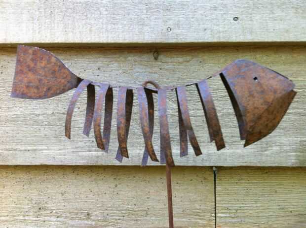 crear una escultura de pescado fresco de algunos pedacitos de metal oxidados y piezas se pueden encontrar en cualquier montón de chatarra.