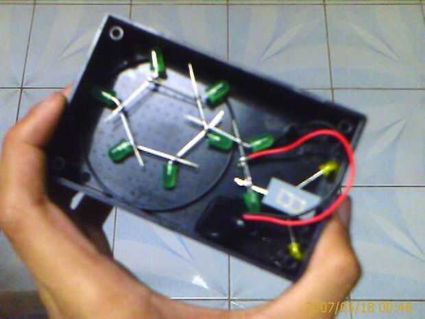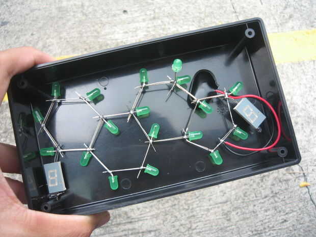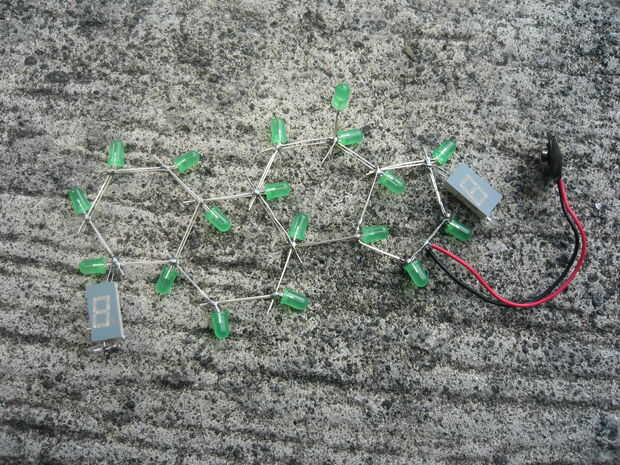 Básicamente, usted armar LEDs y displays de 7 segmentos de tal manera que modela una molécula química. Cada componente representa un átomo y todo es en forma tal que se asemeja a la geometría real de la molécula.