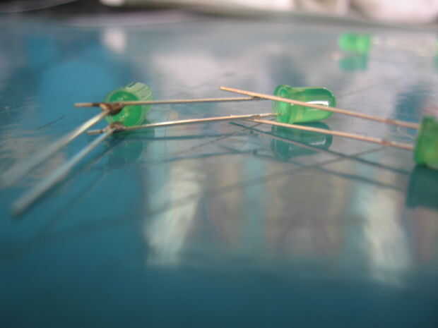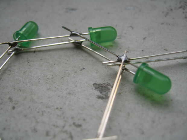 Nota: no olvide soldar entre sí las patas de la misma longitud. Lo que me refiero es a soldadura de tal manera que queden paralelas. Por Convención, pongo la pierna (positiva) más largo en la parte superior.