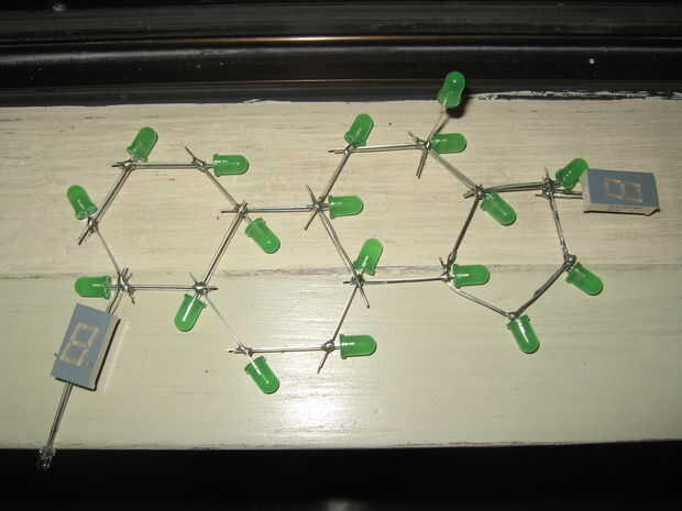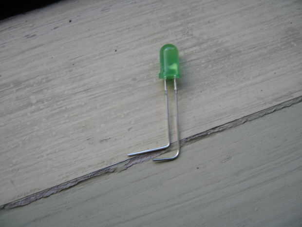 Para añadir un LED que se pega hacia fuera, creo que es mejor doblar las patas del LED como se muestra en la primera foto. El LED en su lugar en la molécula de la ranura y eres bueno para ir. Puede utilizar la misma técnica para conectar LEDs en diferentes ángulos. Puede ver el LED sobresale de la molécula en la tercera fotografía.