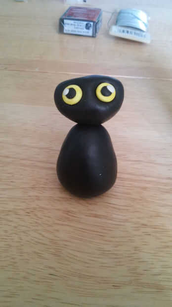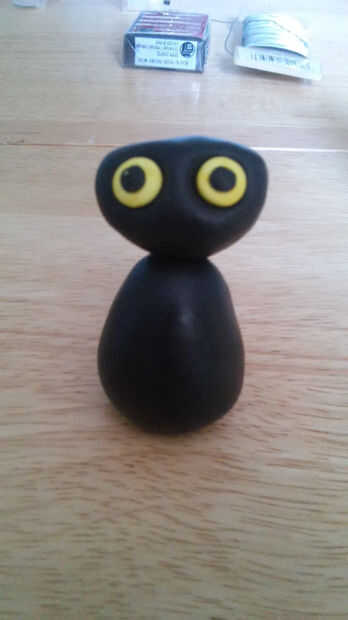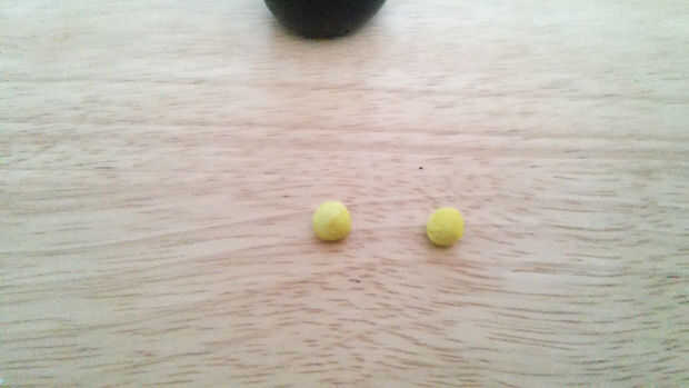 3. Agregue a la pupila. -Crear otra esfera más pequeña para la pupila del ojo y agregar al amarillo de los ojos. Presione sobre el ojo hasta que la pupila negra es bastante plana. También puede agregar algunos arcilla blanca a los lados de la pupila para dar los ojos un poco más dimensión y vida