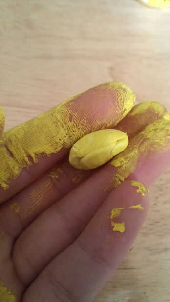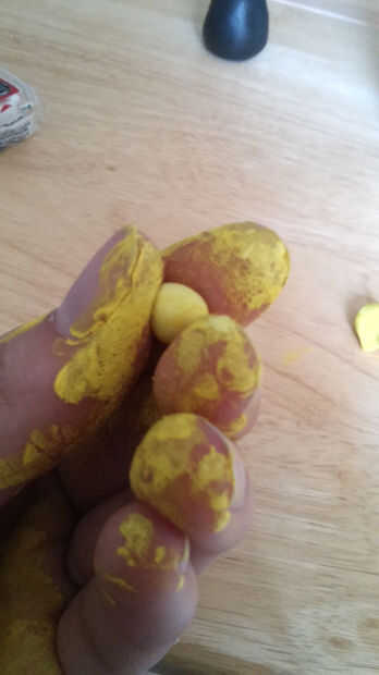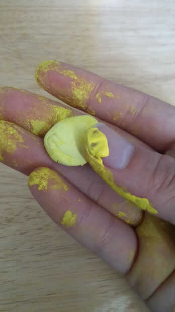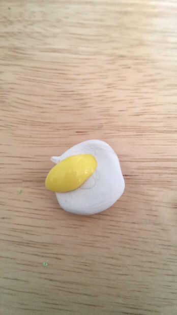 1. color de la arcilla amarilla. No comprar arcilla amarilla así que utilicé algunos de la arcilla blanca que tenía y mezclado con un poco de pintura amarilla. Esto es un proceso desordenado, pero usted conseguirá el color que usted necesite sin necesidad de pintar después