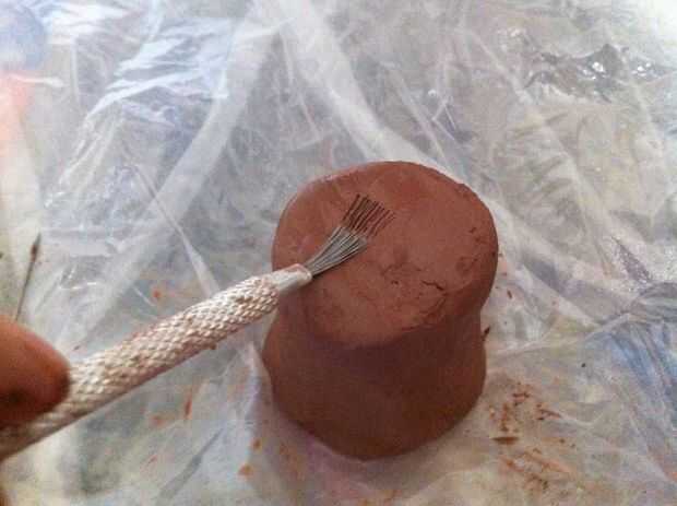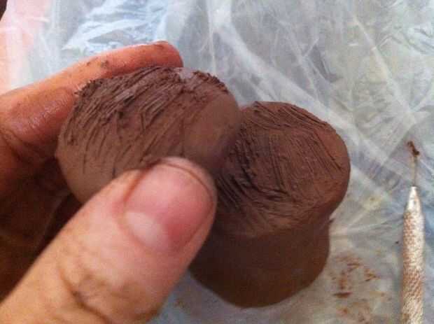 Rayar el registro, pie de pájaro cuerpo y prensa con slip, que es básicamente húmeda arcilla.