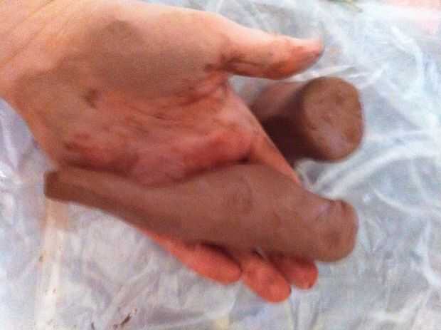 Formar una bola de 1/4 del tamaño de la base cilíndrica. Se trata de pies de aves.
