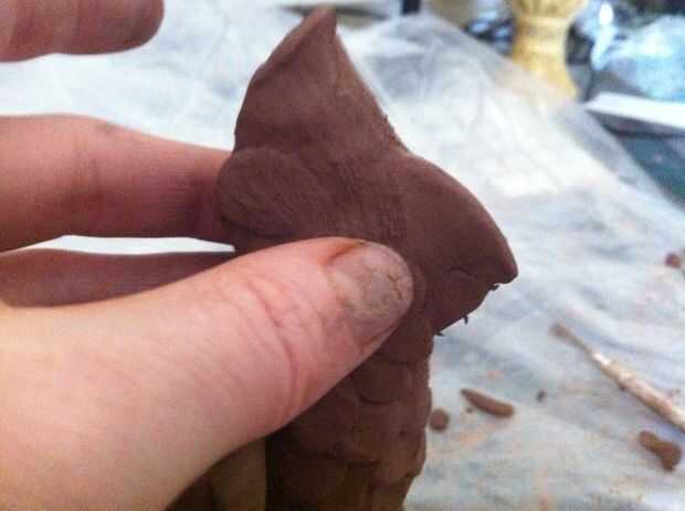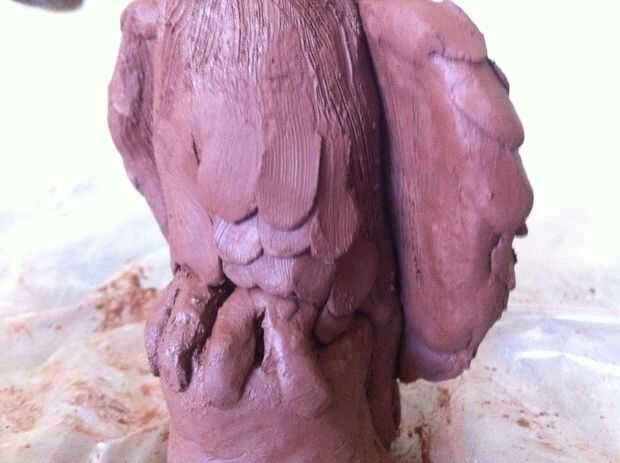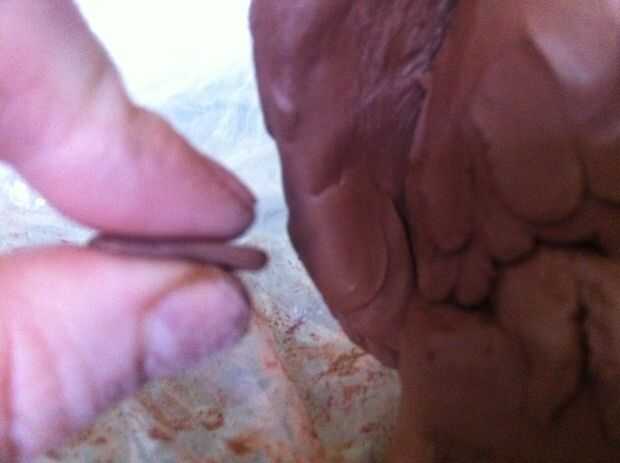 Rodar un trozo de arcilla y presionar para que sea un disco plano. Habrá dos tipos de plumas, por lo que el tamaño del rollo puede ser diferente variando en el tamaño de la pluma.