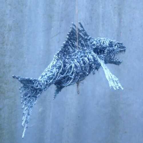 Un pez nadando en el aire es como un pez nadando en el agua. Colgando, como un medio de exhibición también elimina la necesidad de bases y el espacio dedicado.
