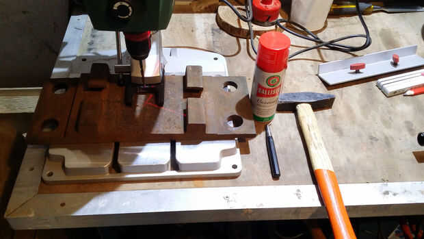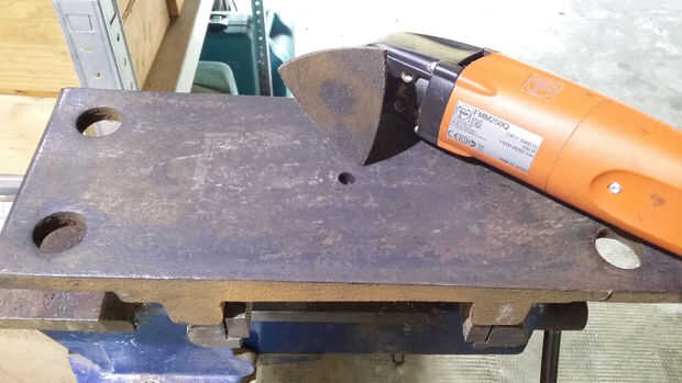Por suerte la viga que usa perfectamente montado sobre la placa de acero. Lo único que hacer fue hacer un agujero (ø 10, 5mm) en el centro de la placa de montaje en la viga con un tornillo de lag 10x90mm.
