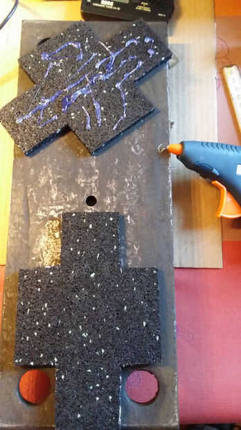 Para proteger mis azulejos de cerámica, pegué dos almohadillas de goma en el lado negativo de la placa de acero después de lijar ligeramente.