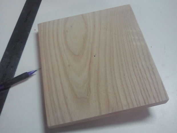 Usé dos trozos de chatarra de roble 7 de 3/4""x 7"para la base y 11" x 7" para la pieza principal, pero funciona cualquier tipo de madera.