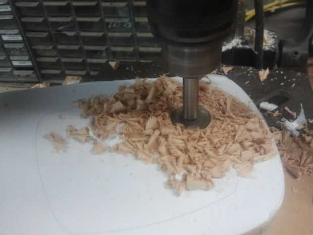6: taladro en la pieza principal para la espiga - encontrar el centro de la pieza principal y perfore un orificio de 3/8" para el pasador.