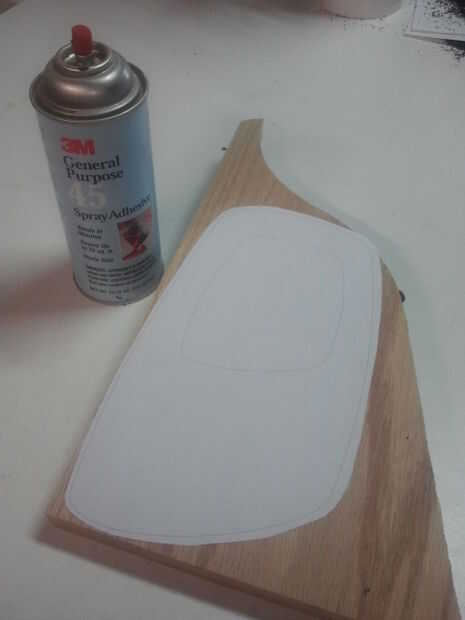 3: impresión de la cola a la 11 "x 7" pieza principal con un adhesivo de montaje en aerosol. 3 M - 45 funcionado muy bien y era posible sacar el papel sin el papel que se pega a la madera.