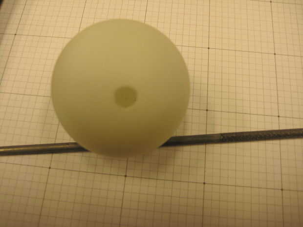 Comencé por perforar un pequeño agujero en la pelota de ping-pong. Allí usé una lima redonda pequeña para ampliar la bodega hasta que fue un ajuste perfecto para el LED rojo que estaba añadiendo.