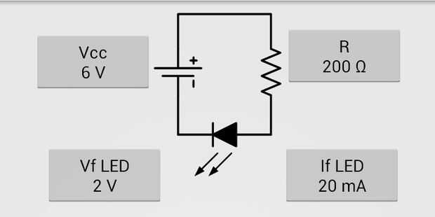 Usé una aplicación para Android llamada ElectroDroid para determinar el tamaño de la resistencia que necesitaba para mi LED. No entraré en detalles aquí sobre el dimensionamiento de la resistencia ya que hay un montón de tutoriales aquí y en otros sitios web.