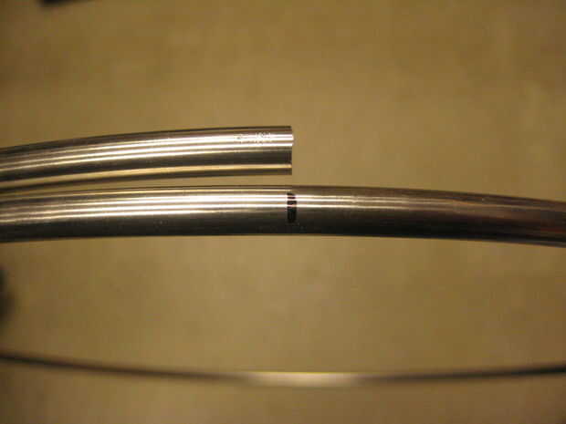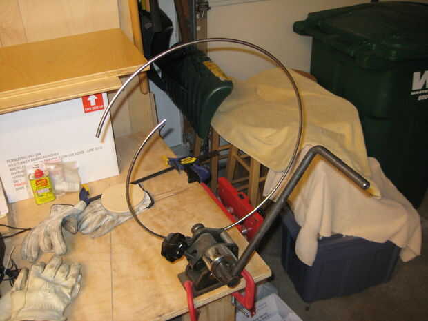 Si no tienes acceso a un rodillo de anillo puede también crear el cuerpo y las piernas envolviendo la varilla alrededor de algún otro objeto redondo como un tubo o un trozo de madera cortado en círculo. Recuerde que el radio de la varilla doblada será un poco más grande que lo usado para doblar la varilla a esa forma debido al metal surgiendo detrás.