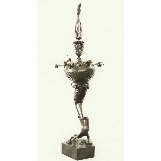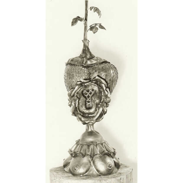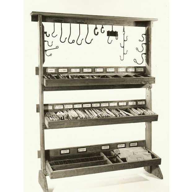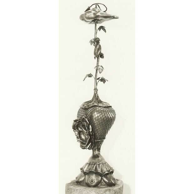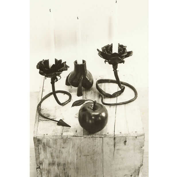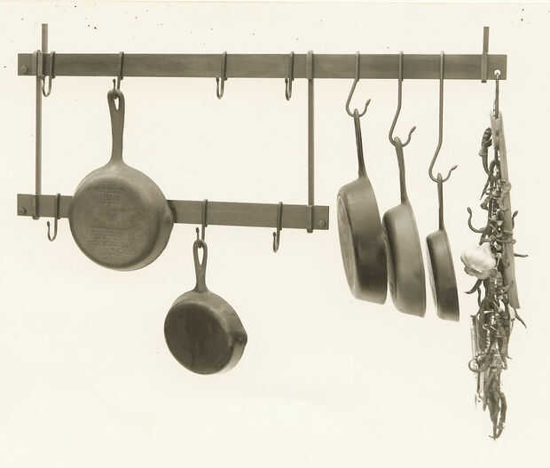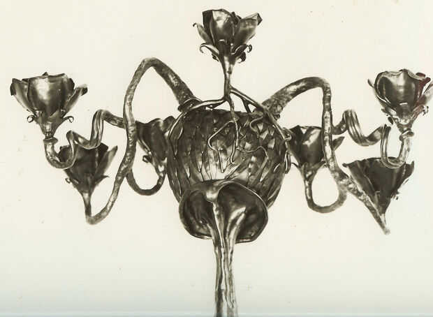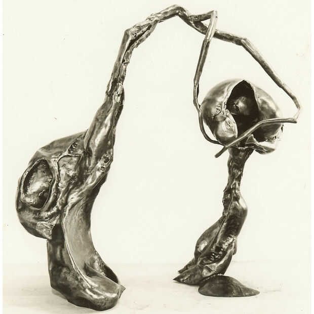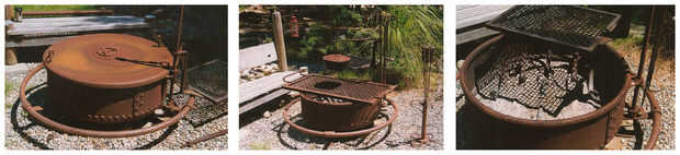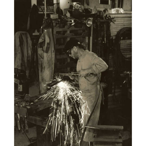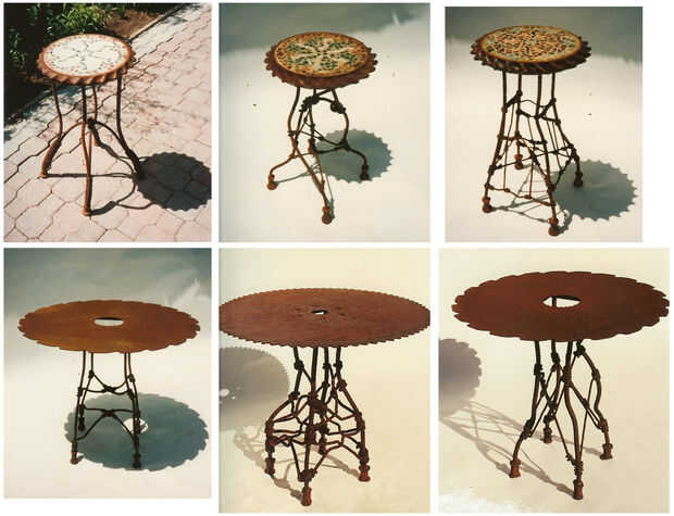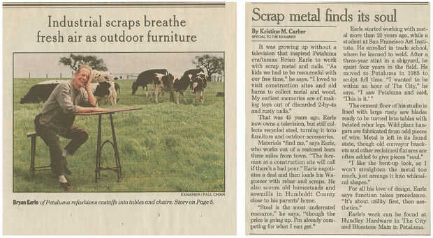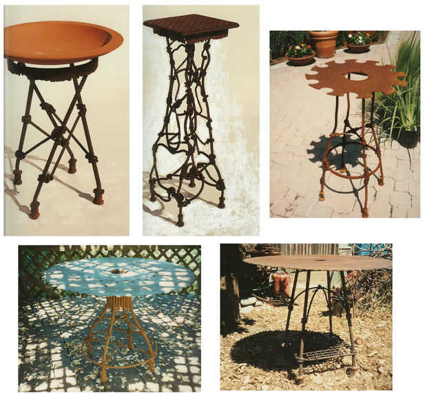 Las esculturas son de los años 60 cuando asistió el San Francisco Art Institute. Fue un verdadero artista y no podía conseguir su cabeza hacer arte por dinero, por lo que fue la ruta de utilidad y empezó a hacer ganchos y bastidores de cocina. Toda su obra utiliza acero reciclado y todo lo que pudo encontrar. Tenía miles de toneladas de chatarra que recogió en los años en su tienda.