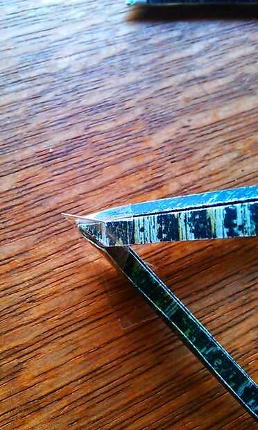 Juntar 3 triángulos en cada esquina de los tetraedros y les sellotape como se muestra para ayudar a mantener juntos mientras está montando el modelo.
