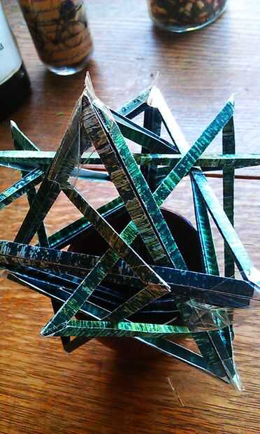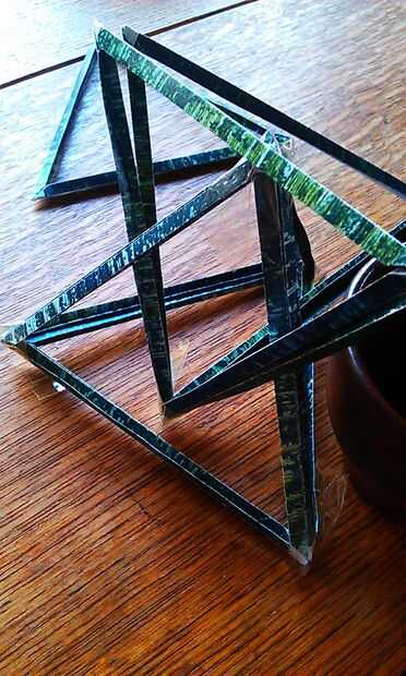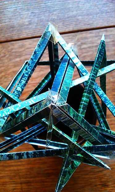 El tejer desde aquí en es exactamente lo mismo que la construcción de los 5 tetraedros que se cruzan, excepto que usted debe hacer primero tus tetraedros de triángulos. Recomiendo primero doblar las 5IT antes de intentar esto, como los triángulos pueden conseguir confusos si no tienes un concepto de tejer ya.